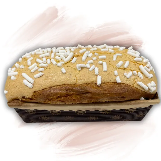 Ingredienti: amido di mais, amido di riso, zucchero, fecola di patate, farina di riso, UOVA, acqua, olio semi di girasole, lievito di birra, glucosio disidratato, destrosio (da mais), emulsionanti: sciroppo di glucosio, esteri dell’acido lattico di mono- e digliceridi degli acidi grassi, esteri di propano-1,2-diolo degli acidi grassi, farina di SOIA, mono e digliceridi degli acidi grassi; agenti lievitanti: difosfato disodico, carbonato acido di sodio; addensati: gomma di xantano e idrossipropilmetilcellulosa; fibra vegetale: psyllium; proteina di pisello, sale, curcuma e vaniglia,. Emulsione aromatica: arancia candita, rum, burro di cacao, miele di acacia, vaniglia e sale. Farcitura: uvetta e marmellata albicocche; Glassa: farina di MANDORLE, zucchero, farina di mais, fecola di patate, gomma xanthan, ALBUME D’UOVO, zucchero in granella. (Allergeni: 3, 6, 8). Può contenere tracce di: frutta a guscio, semi di sesamo, soia, senape.