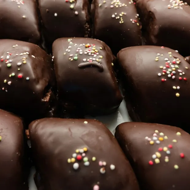 Ingredienti: pasta di pan di spagna senza glutine, aroma arancia, marmellata di albicocca (zucchero, purea di albicocca (25%), sciroppo di glucosio, gelificanti: E440, E401, correttori di acidita’: E330, E333, E302, conservante: E202, aromi). Copertura: zucchero, grasso vegetale (palmisto), cacao magro in polvere (23%), emulsionante: E322, E492. (Allergeni: 7)