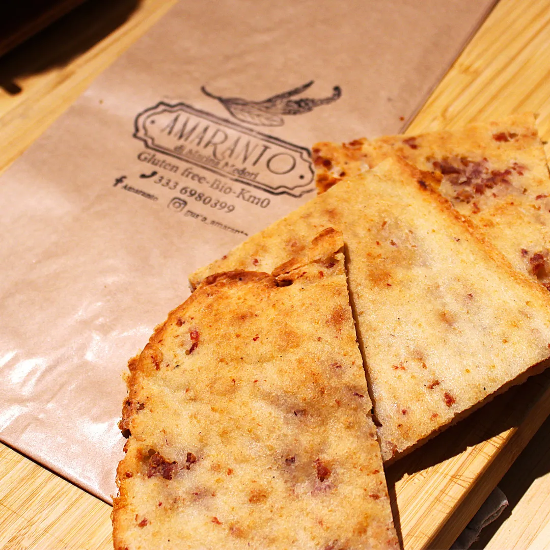 Ingredienti: farina integrale di riso bio, farina integrale di miglio bio, farina integrale di grano saraceno, amido di mais bio, fecola di di patate bio, guar, olio evo bio, acqua, lievito di birra, sale, psyllium bio, inulina, sale, pasta di salsiccia, PARMIGIANO REGGIANO (naturalmente privo di lattosio), olio di semi di girasole alto oleico. (Allergeni: 7: no lattosio, si proteina del latte). Può contenere tracce di frutta a guscio e semi di sesamo.